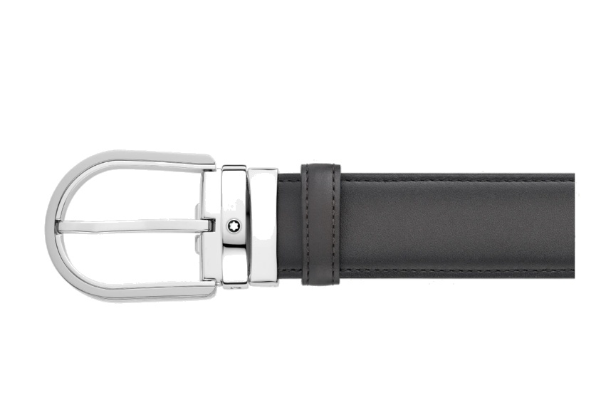 Кожаный ремень с пряжкой в форме подковы серого цвета 35 мм от магазина премиальных ручек Premium Pens в Петрозаводске.